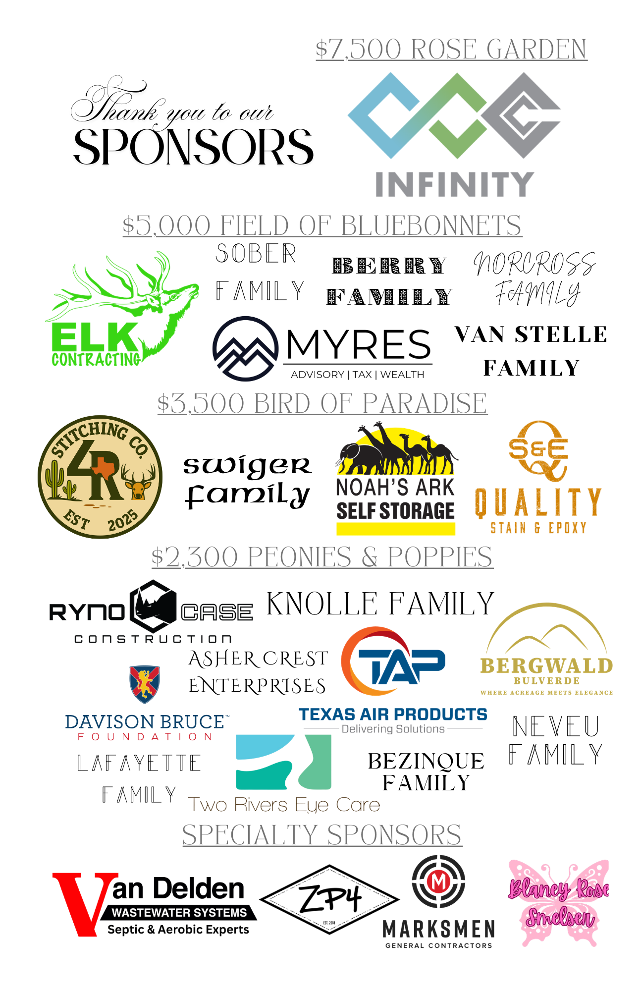 Below is a list of our generous Clay Shoot sponsors: